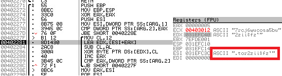 Chanitor encrypts some key components like C2 server locations that is decrypted only when used on run time. For example, "tor2web.org" is decrypted using a xor loop: