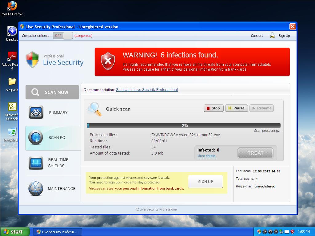 FakeAV remains a popular technique to lure targets into paying attackers. Most of the instances of FakeAV we have reported earlier were running a fake computer scan in the browser. This time it appeared as a Desktop application.