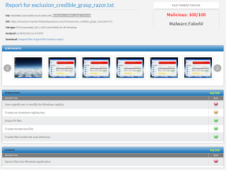 The malicious files seem to be changing. It started with the classic FakeAV, then switched to a fake PRISM warning. In both cases, the goal is to scare the target into paying the attacker to "fix" their computer.